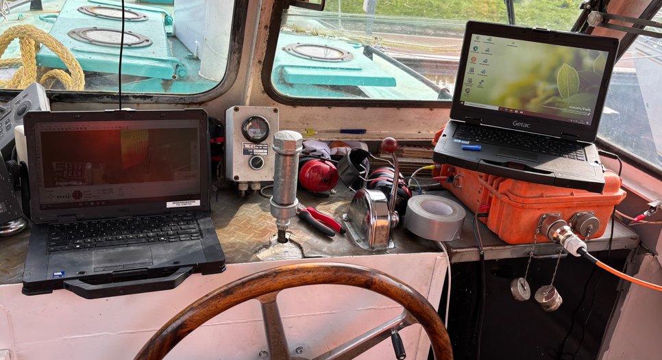 De diepte en de vorm van de bodem wordt met sonar in kaart gebracht.