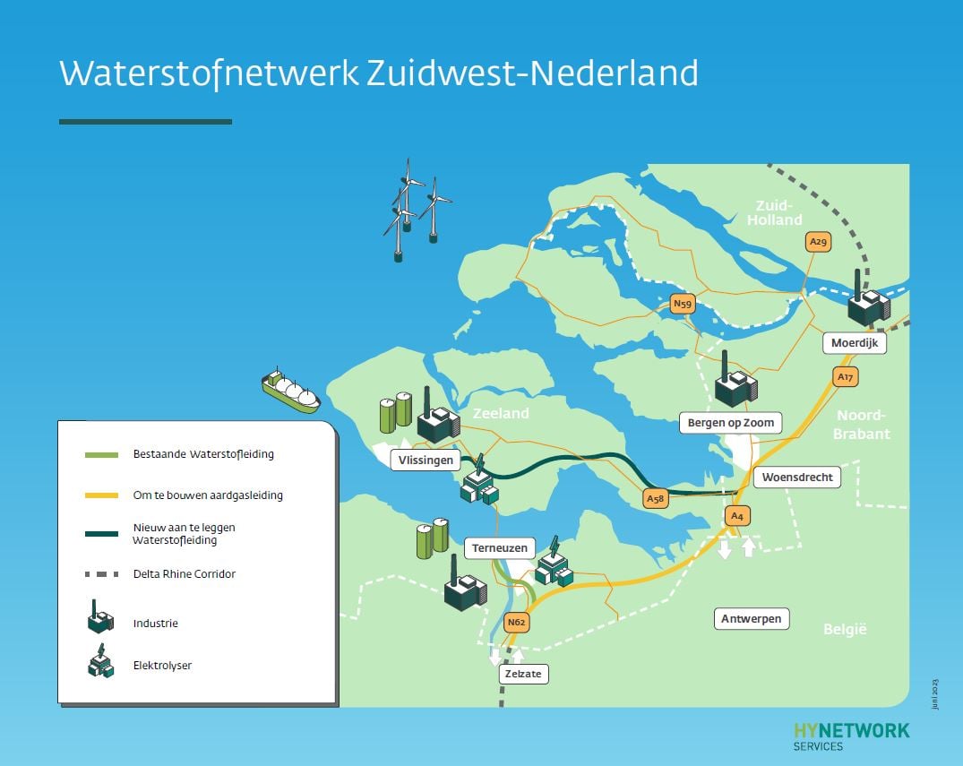 Het waterstofnetwerk in Zuidwest-Nederland